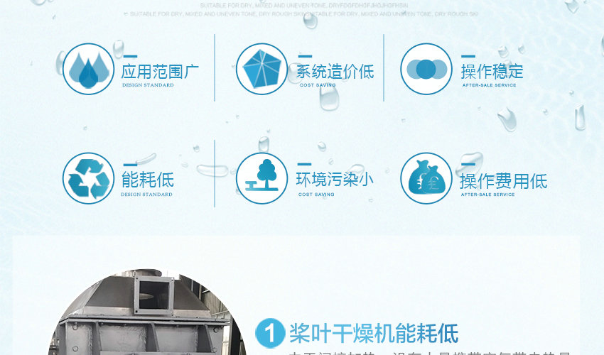 2、漿葉干燥機(jī)(污泥干燥機(jī))系統(tǒng)造價(jià)低:?jiǎn)挝挥行莘e內(nèi)擁有巨大的傳熱面,就縮短了處理時(shí)間,設(shè)備尺寸變小。就極大地減少了建筑面積及建筑空間。