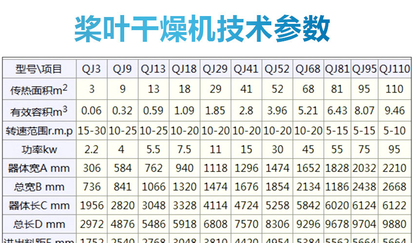 3、QJ系列空心槳葉干燥機(jī)處理物料范圍廣:使用不同熱介質(zhì),既可處理熱敏性物料,又可處理需高溫處理的物料。常用介質(zhì)有:水蒸汽、導(dǎo)熱油、熱水、冷卻水等。既可連續(xù)操作也可間歇操作,可在很多領(lǐng)域應(yīng)用。