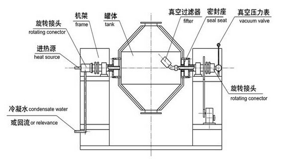 實驗室專用小型雙錐回轉(zhuǎn)真空干燥機結(jié)構(gòu)示意圖
